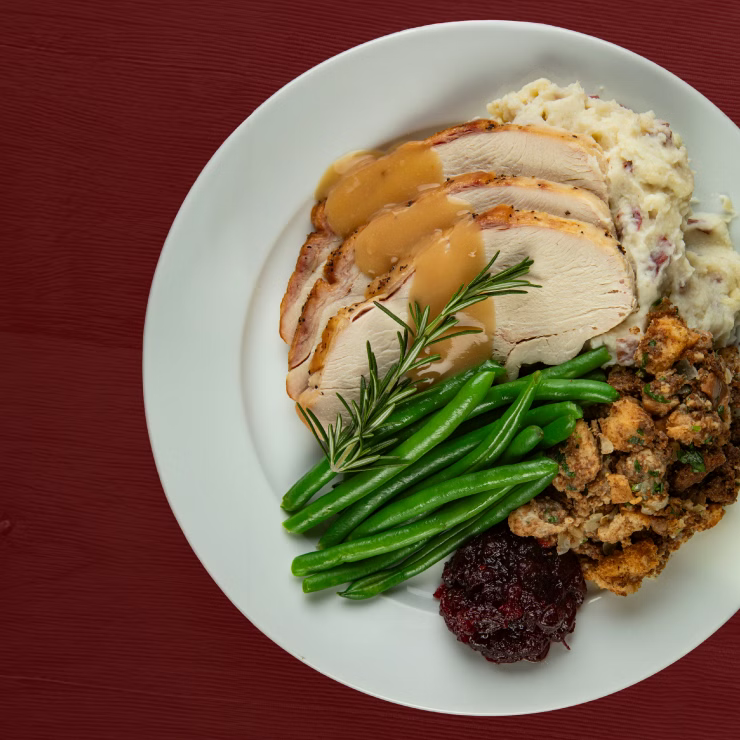 Roasted Turkey with Savory Pan GravyYukon Mashed PotatoesBrioche and Sage StuffingGreen BeansMashed Sweet PotatoesCranberry Relish